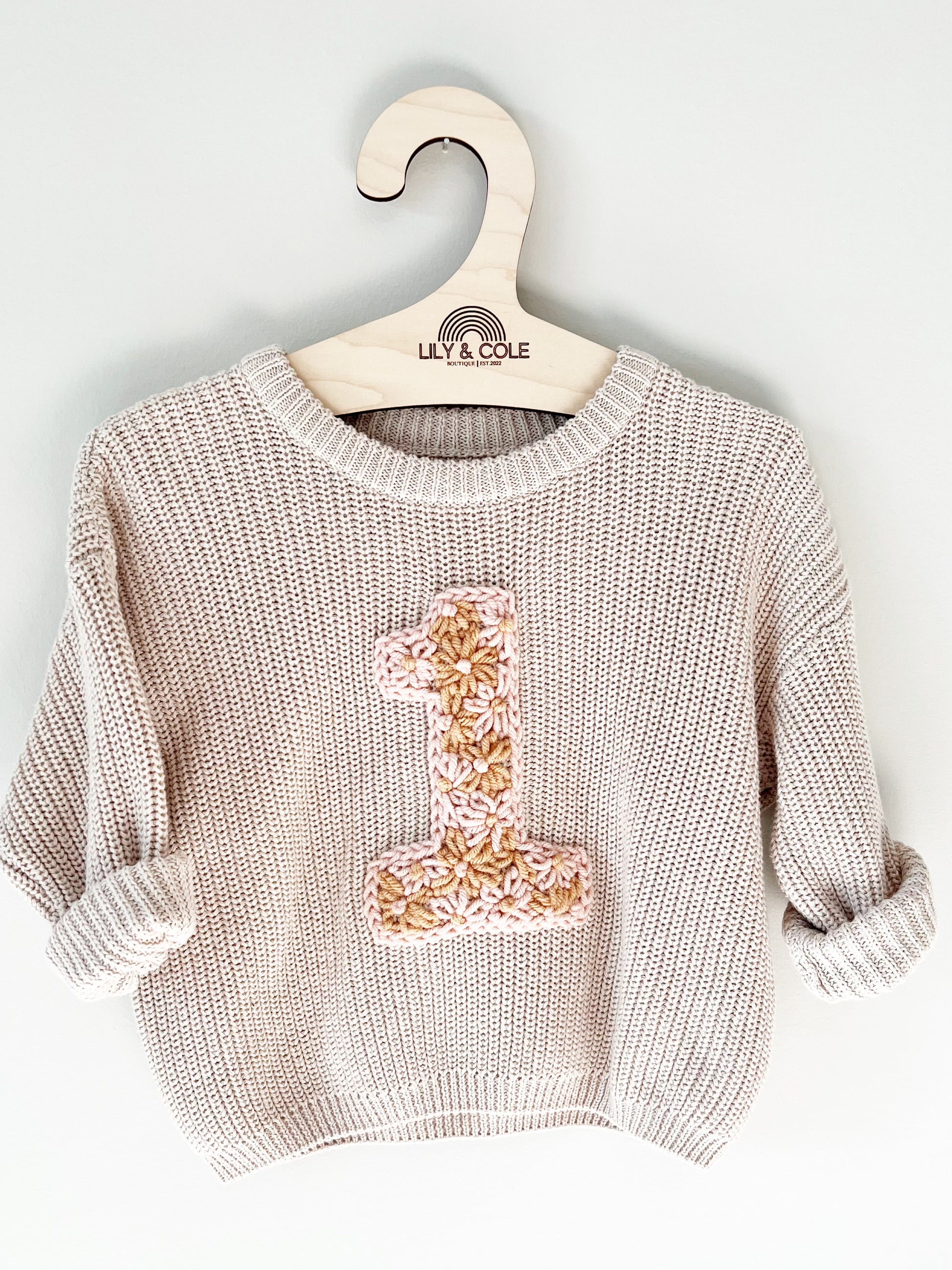 Indulge in warmth and style with our Cotton Sweater, personalized with the number "1". This knit is the perfect idea for a first birthday or milestone gift. Each sweater is a unique piece crafted for capturing special moments, celebrating occasions, or gifting someone who means the world to you. It's not just a sweater; it's a heartwarming, personalized keepsake that will be cherished for years to come.