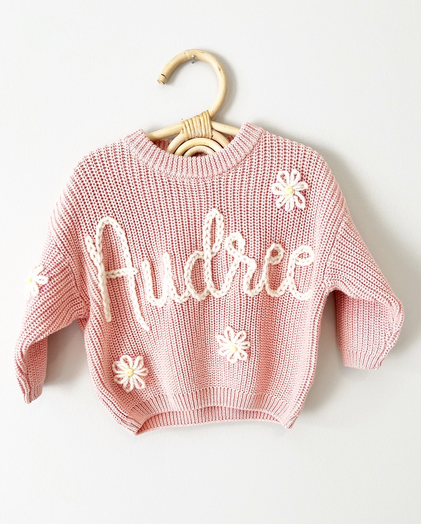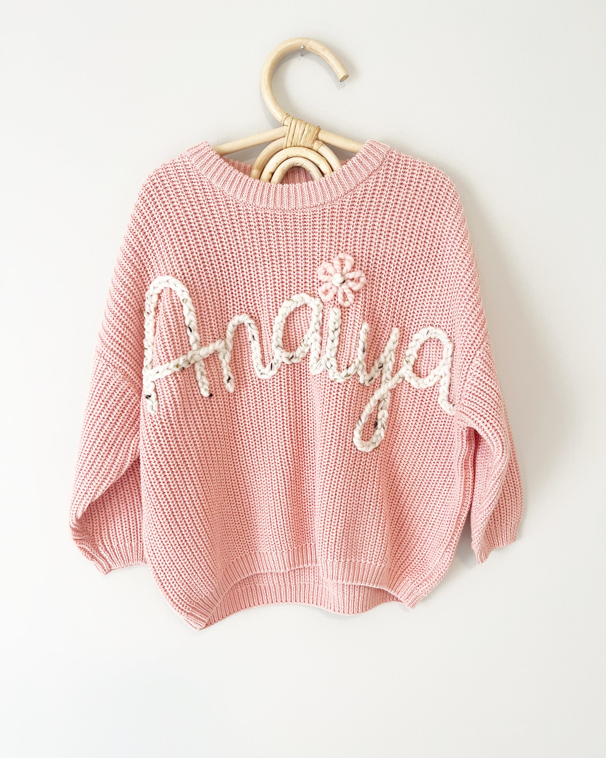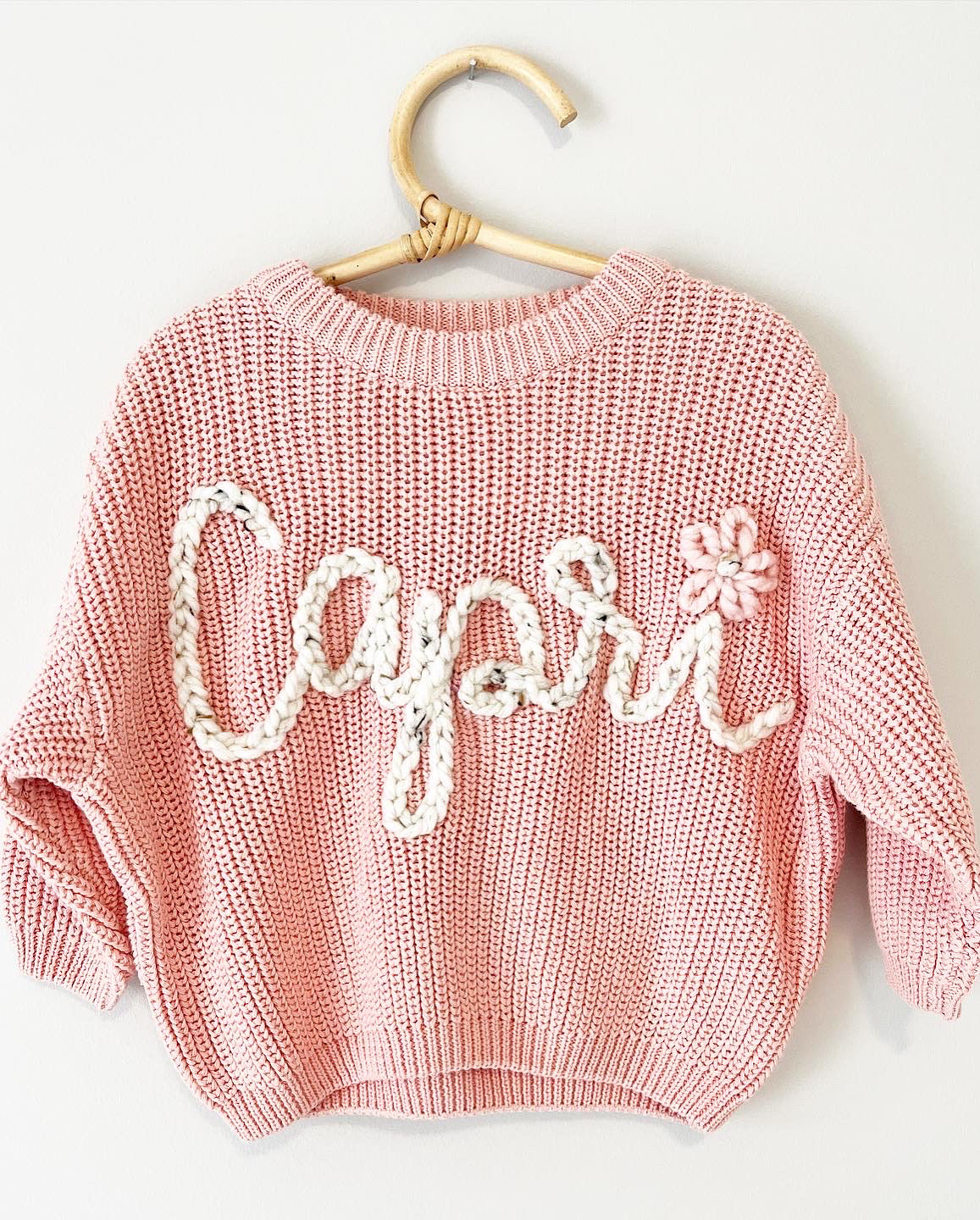 Indulge in warmth and style with our Cotton Sweater, personalized just for your little. Choose a name, a monogram floral letter, a special word, or a unique design. Hand-embroidered with love, each sweater is a unique piece crafted for capturing special moments, celebrating milestones, or gifting to that mama in your life who already has everything. It's not just a sweater; it's a heartwarming, personalized keepsake that will be cherished for years to come.